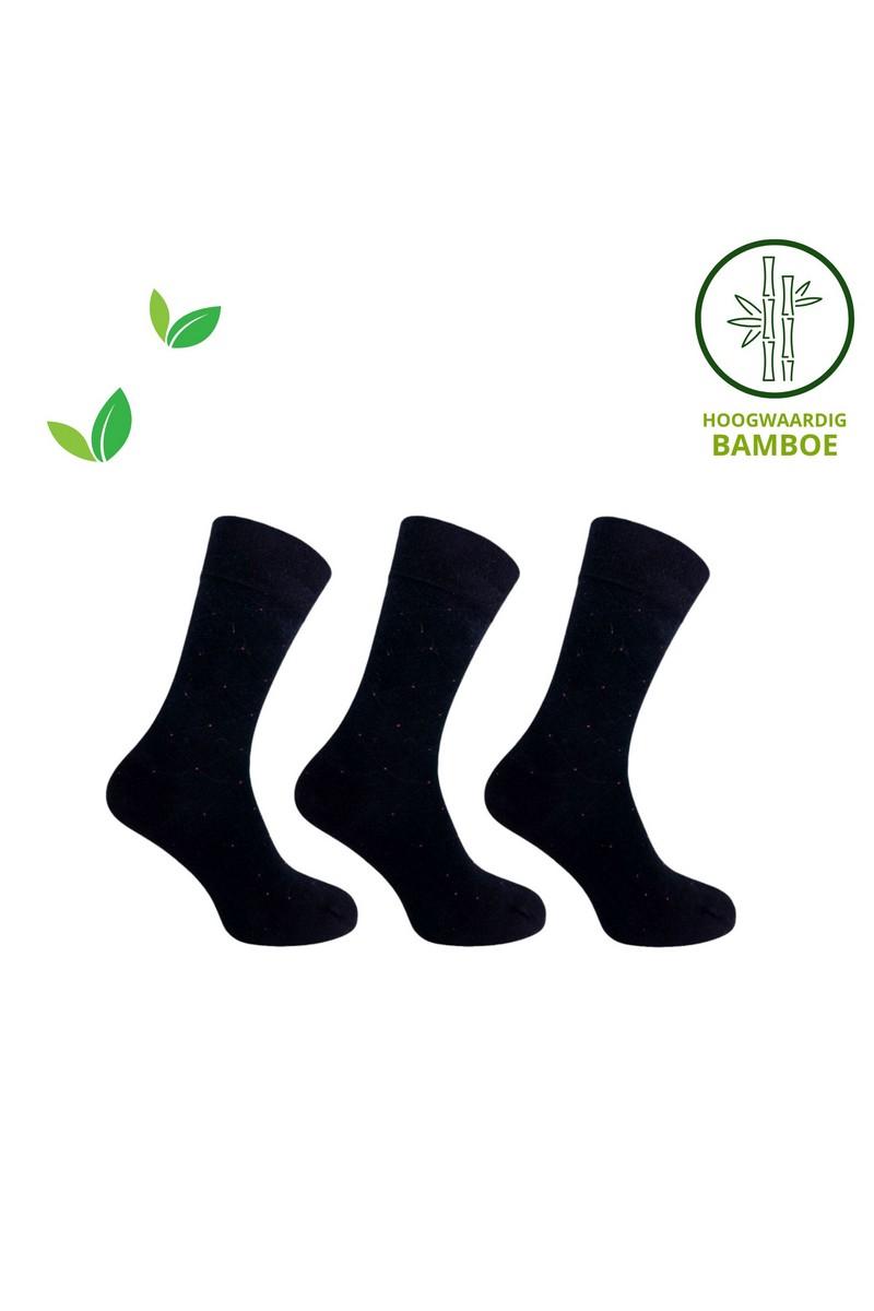 Sokken Heren Classic Bamboe Set van 3 paar zwart met rode stip